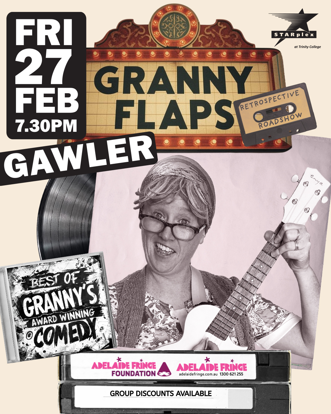 “Granny Flaps – Retrospective Roadshow” is a riotous celebration of the very best moments from the award-winning musical comedy sensation. Expect a whirlwind of sassy songs, scandalous tales, and razor-sharp wit as Granny revisits her most iconic numbers and jaw-dropping anecdotes – with a few new surprises tucked into her compression stockings.