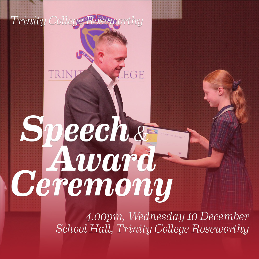 It gives us great pleasure to invite you and your family to the first Trinity College Roseworthy Speech Day and Awards Ceremony. This is our most prestigious event in the year when we celebrate the efforts of the whole school as well as reward prize-winners.