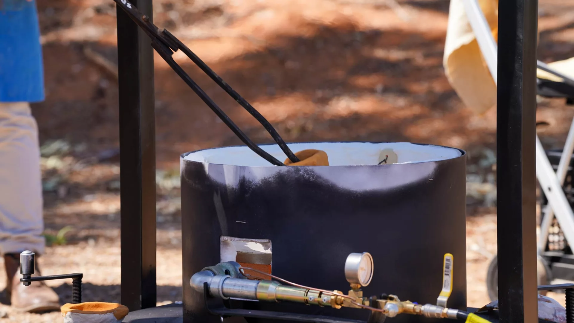 The classroom was moved outdoors as once the pottery is heated and removed from the of the kiln it is subjected to different treatments to create unusual and often quite spectacular glazing effects.