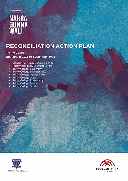 Trinity College is a multi-school co-educational college of excellence, open to all in a disciplined, caring Christian environment that is situated on the lands of the Kaurna people. Our vision for reconciliation starts from our belief that we acknowledge the equality of all people, regardless of their cultural background. Click on the image below to download a copy of the current Reconciliation Action Plan (RAP).